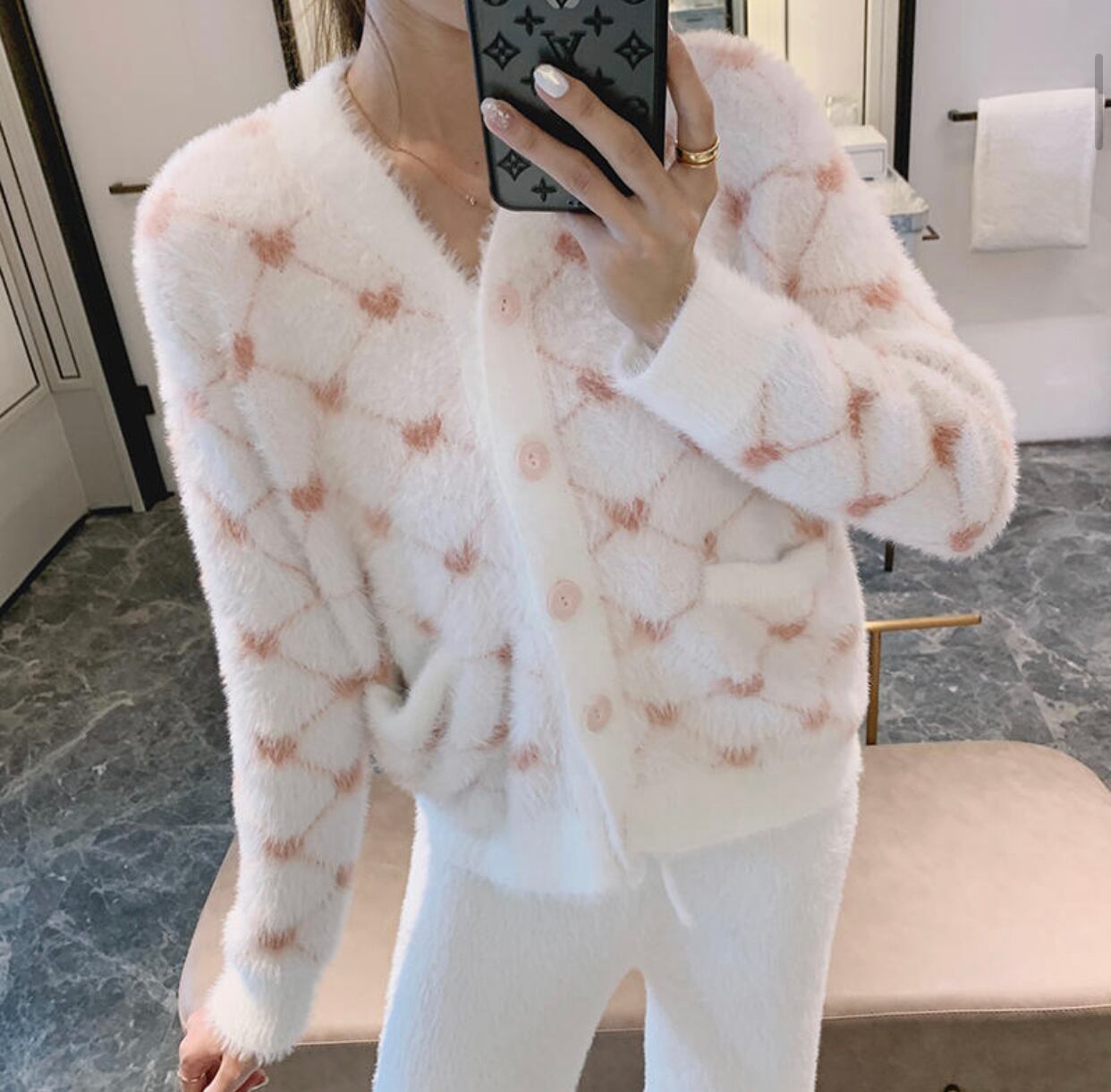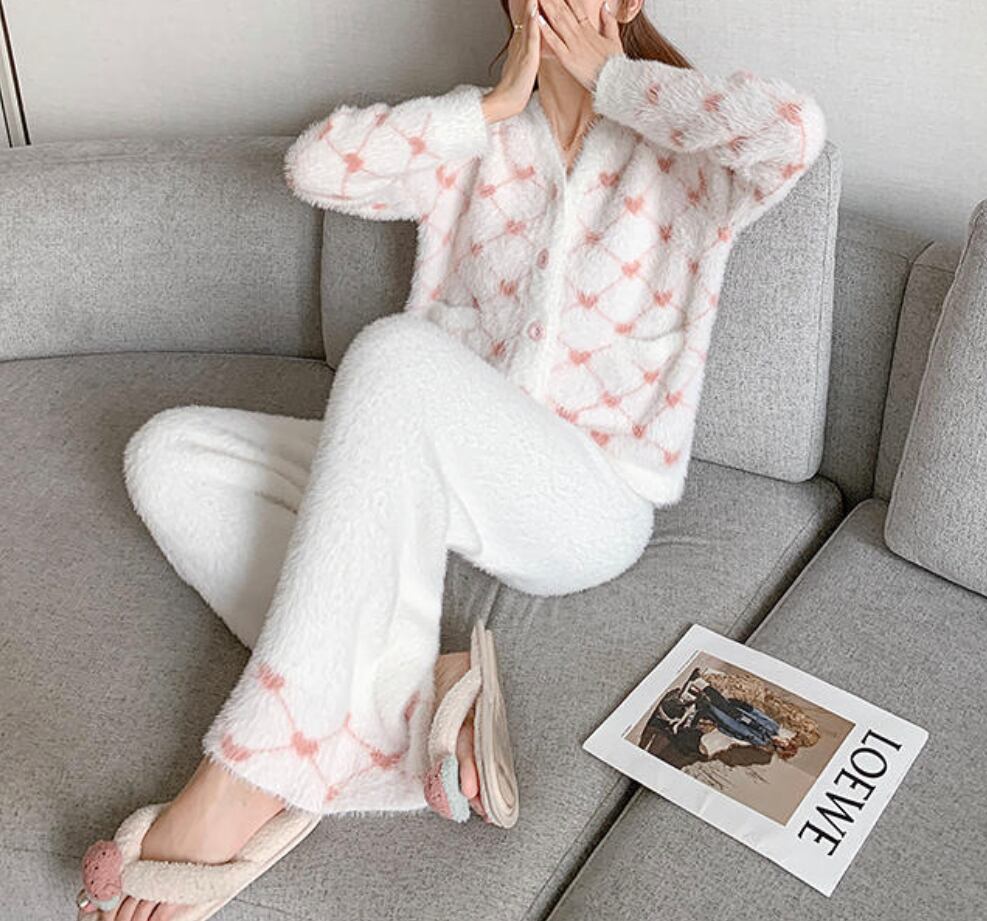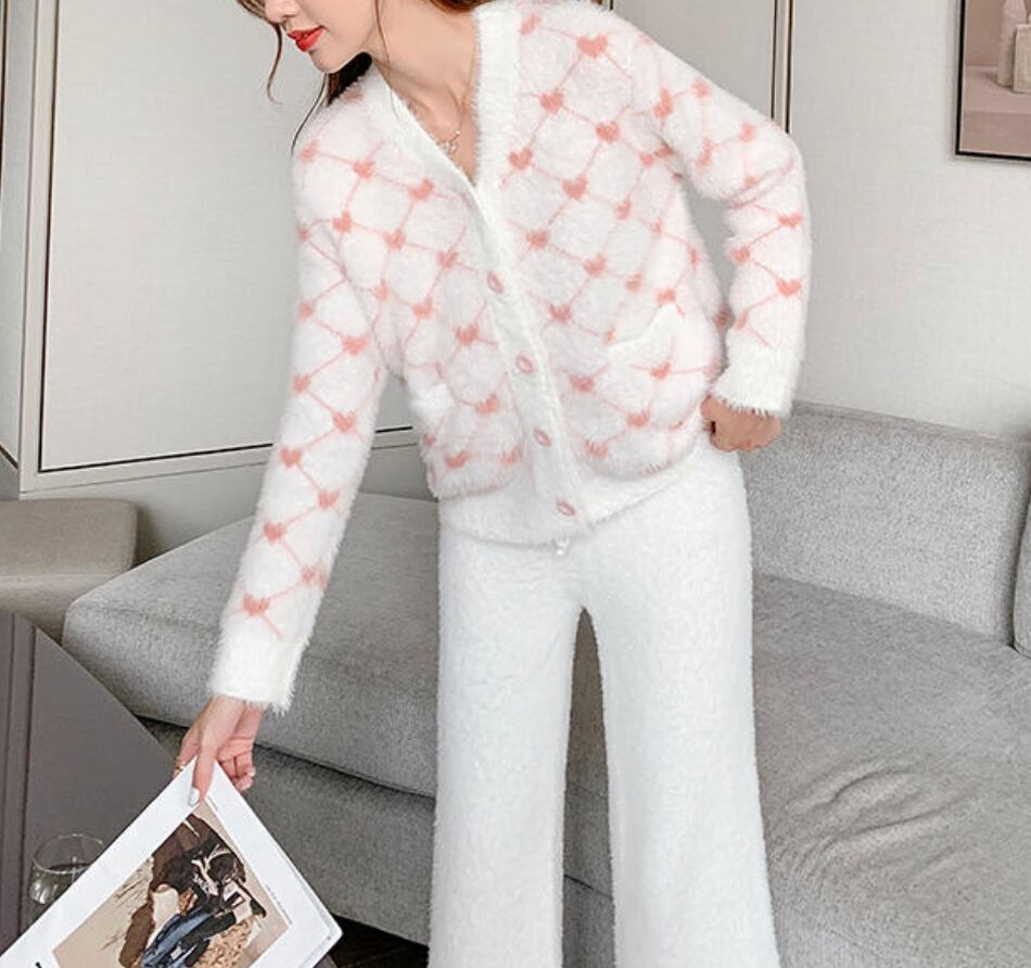ミンクフリースハートモチーフセットアップ